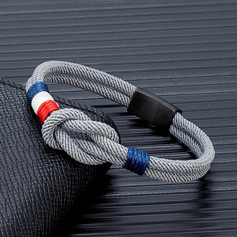 Bracelet tissé double corde avec drapeau française et symbolique