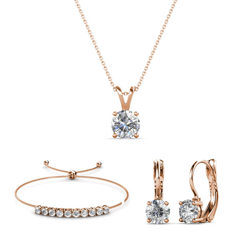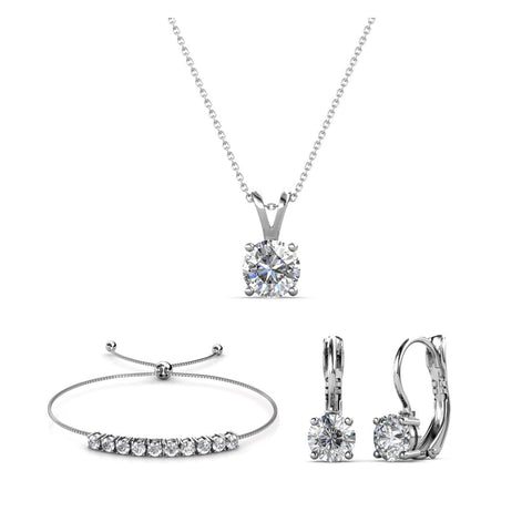 Parure Mia round vernice ornée de 13 cristaux Swarovski - 1 collier + 1 pendentif + 1 paire de boucles d’oreilles + 1 bracelet - Livraison offerte